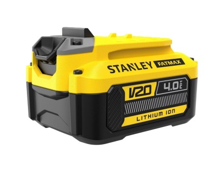 Batería Stanley V20 18V 4Ah Li-Ion, ligera, potente y sin efecto memoria. Ideal para herramientas inalámbricas.