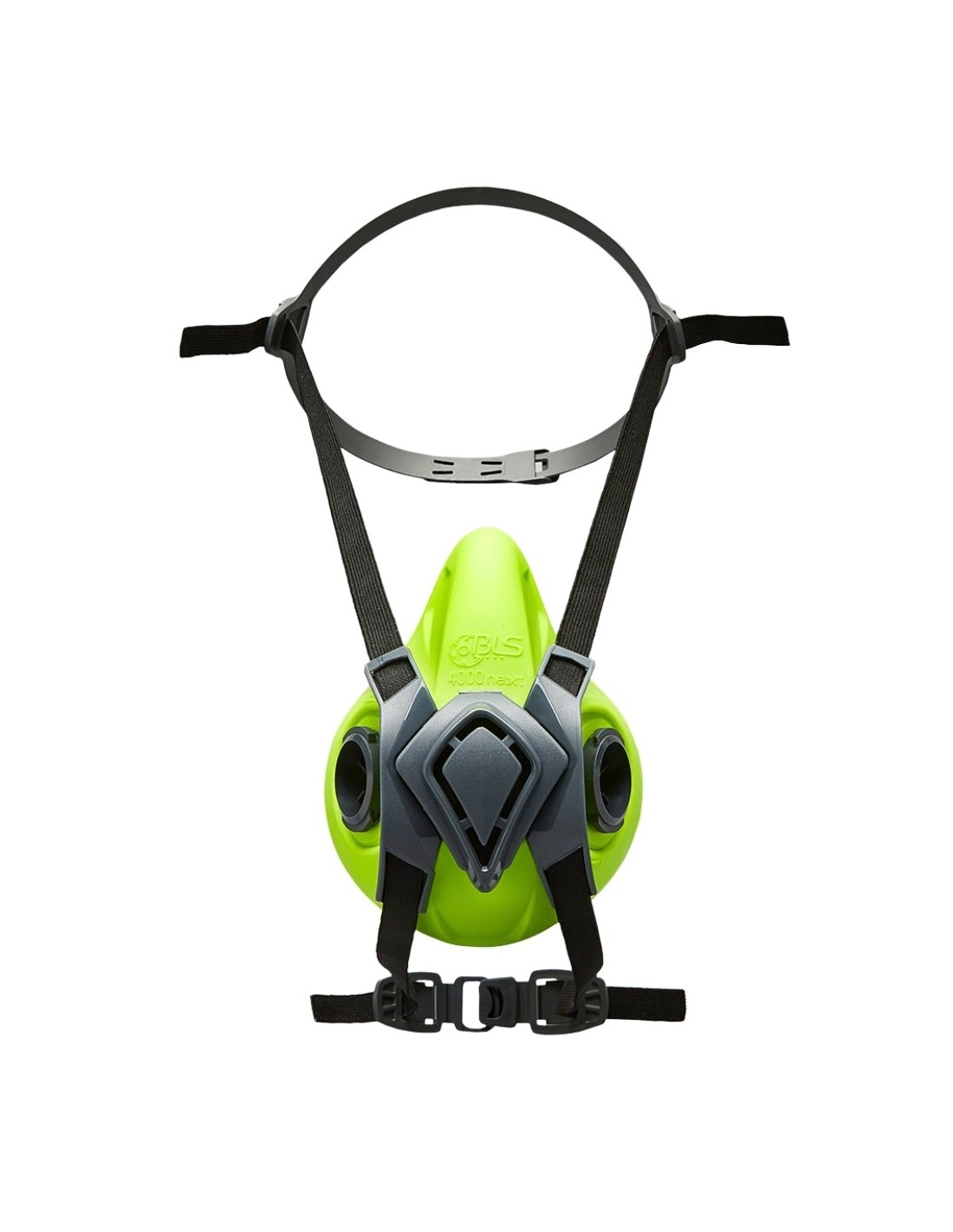 Media máscara respiratoria BLS 4000 Next reutilizable con conexión bayoneta B-Lock para máxima seguridad. Sistema Drop-Off revolucionario permite quitar máscara sin retirar arnés. 25% más ligera que modelos anteriores.
