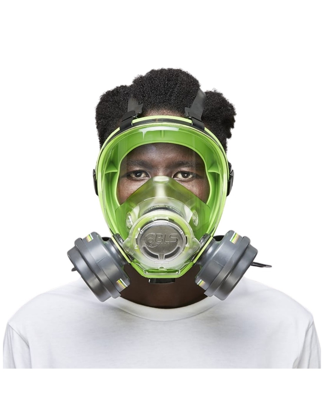 Máscara completa respiratoria BLS 5000 reutilizable con conexión bayoneta B-Lock y sistema anti-empañamiento avanzado. Visor panorámico policarbonato clase óptica 1 sin distorsiones.