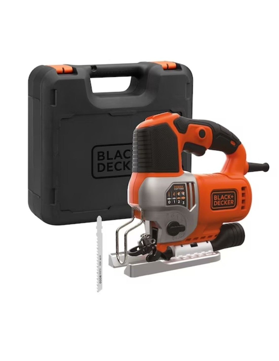 Sierra calar Black+Decker 650W con maletín acción pendular. Velocidad variable arranque controlado. Gran visibilidad trayectoria corte mayor precisión.