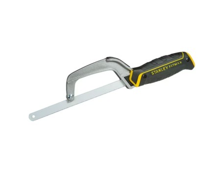 Mini sierra de armadura metálica. Mango de material sintético. Hoja ajustable en toda su longitud. Acepta hojas de cualquier longitud, incluso rotas.