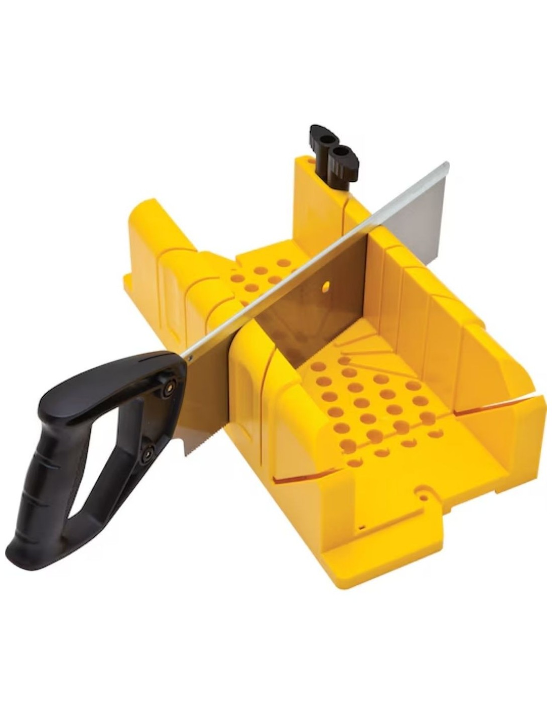 Cuerpo de materia sintética muy resistente. Para cortes con ángulos a 45º, 90º y 22,5º. Suministrado con un serrucho de 355 mm, de acabdo fino (13DPP) y dentado HP