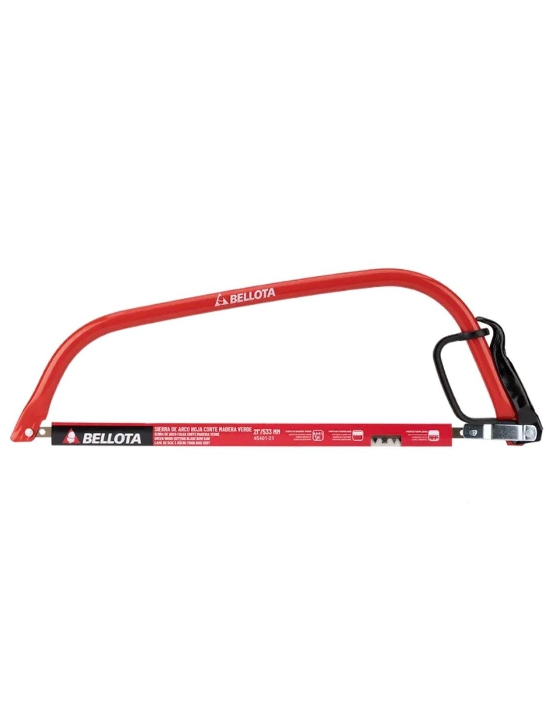 Arco de sierra con sección reforzada y protector de mano que garantiza un corte seguro y cómodo, logrando cortes fáciles y rectos gracias a que la hoja se mantiene tensa, recta y centrada durante el trabajo; sus dientes, templados por inducción de alta frecuencia, prolongan la vida útil de la hoja, mientras que la altura homogénea de los dientes aumenta la resistencia y el rendimiento, contando además con hoja de dentado americano diseñada para un corte rápido y sencillo de madera verde.