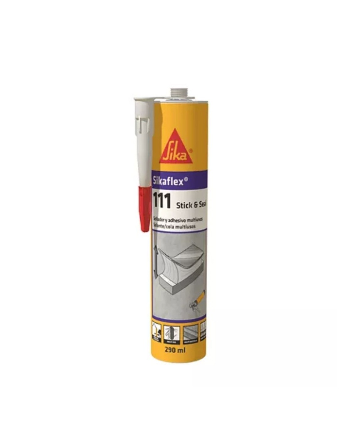 Sikaflex®-111 Stick & Seal es un adhesivo y sellador multiuso monocomponente, con amplia adhesión y sellado en la mayoría de los soportes y materiales para la construcción. Para uso tanto interior como exterior.