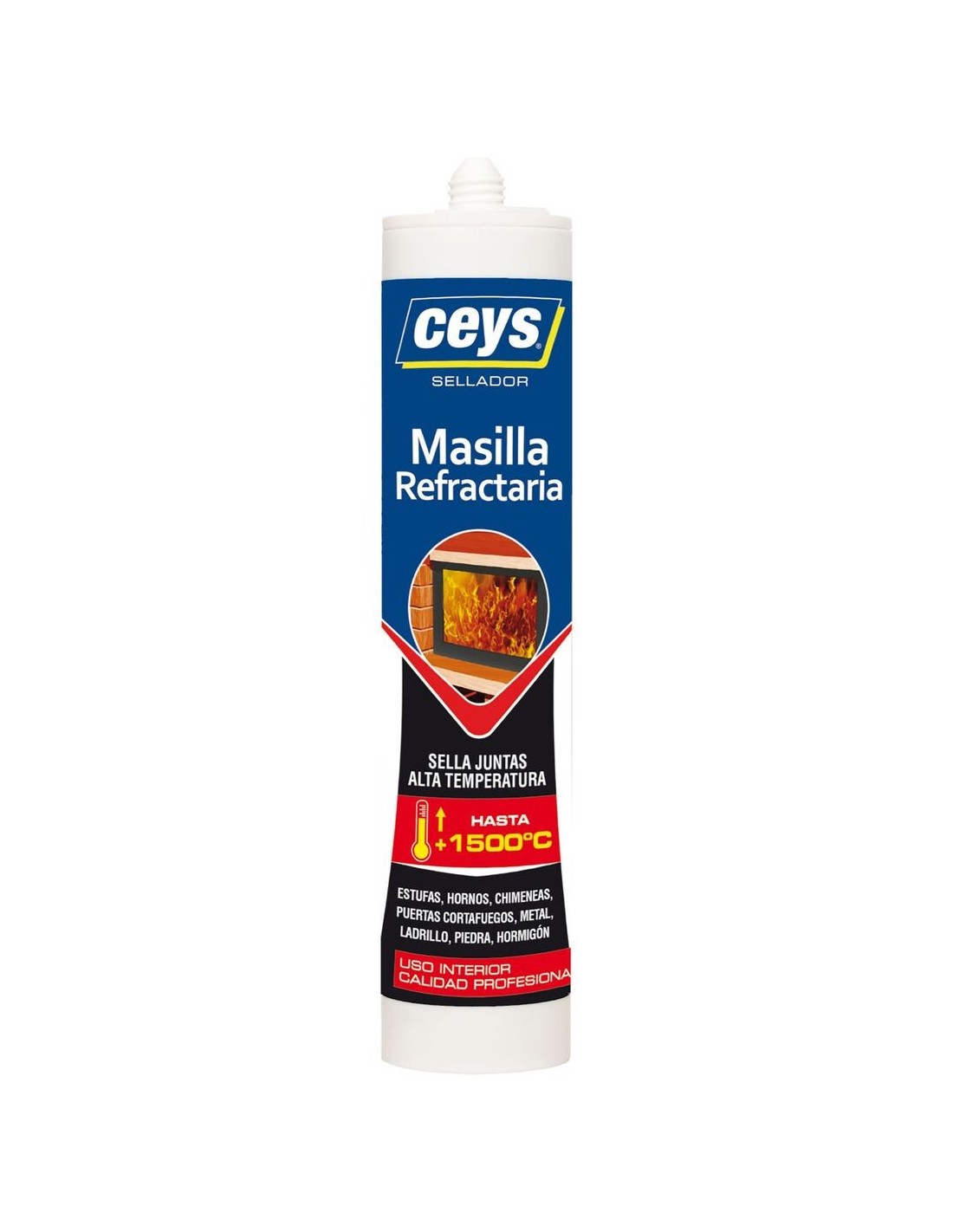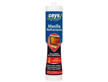 Masilla refractaria CEYS de 310 ml, ideal para reparar y sellar juntas en chimeneas, hornos y estufas. Resistente a altas temperaturas.