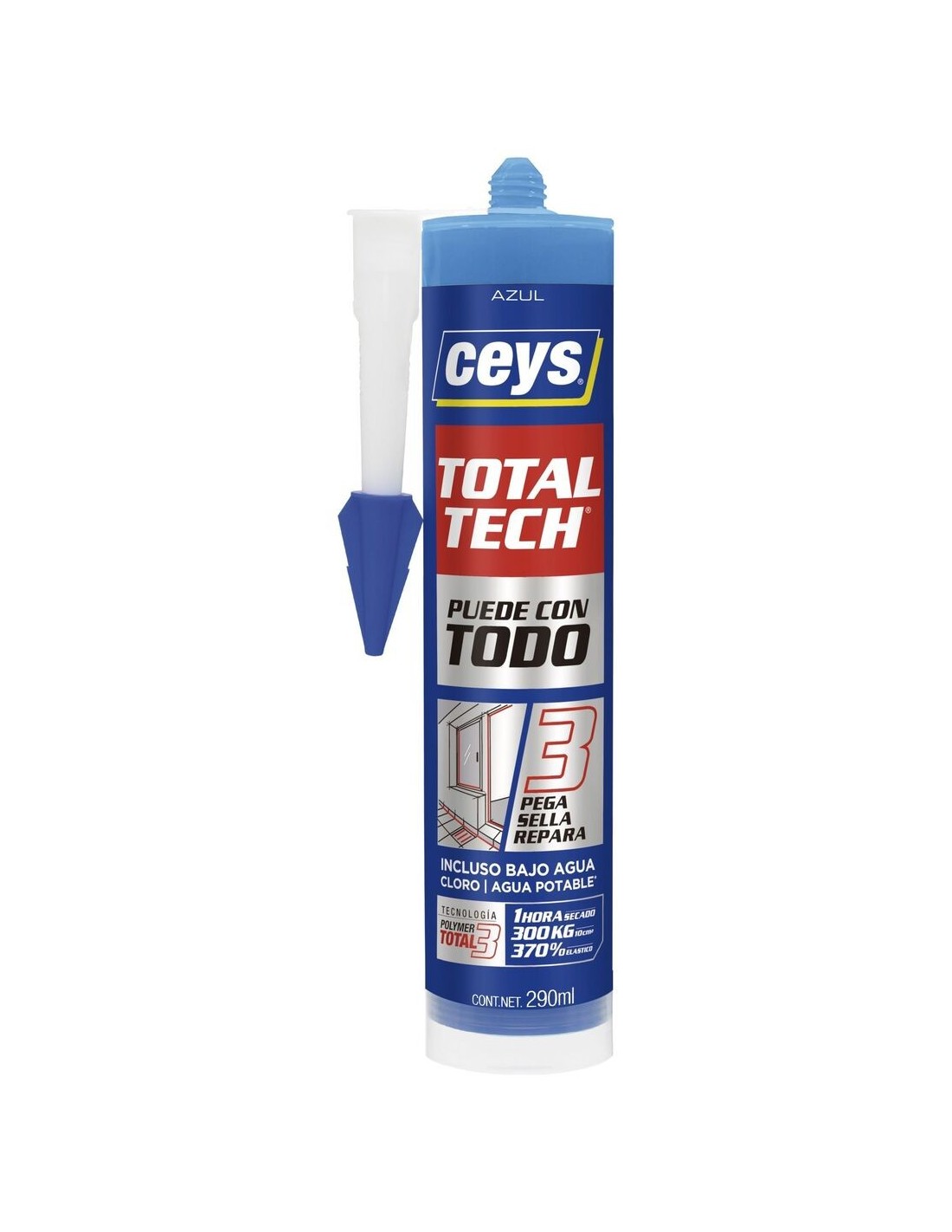 Ceys Total Tech Azul en cartucho de 290ml es un adhesivo de alta calidad ideal para unir y reparar todo tipo de superficies. Su fórmula versátil permite aplicaciones en madera, metal, cerámica y más. Este producto se adapta a tus necesidades de bricolaje, ofreciendo una resistencia excepcional y un secado rápido. Ideal para trabajos en el hogar o proyectos profesionales, garantizando resultados duraderos y eficaces.