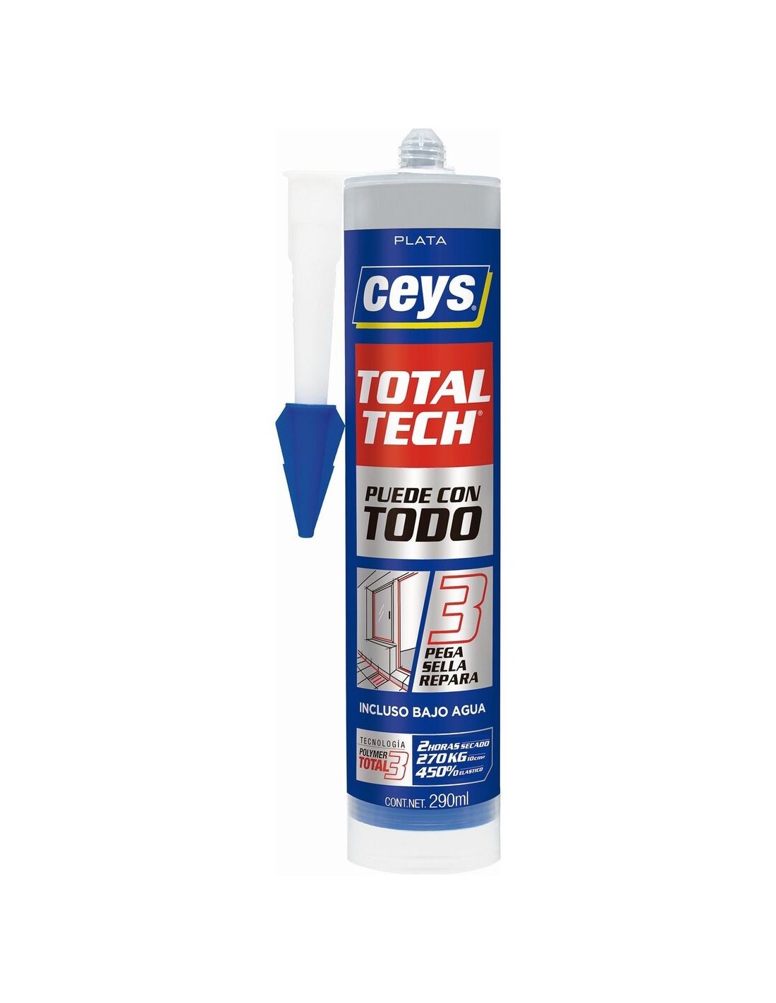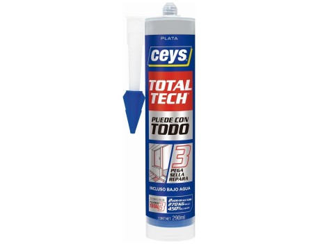 Ceys Total Tech Plata es un adhesivo multiuso ideal para todo tipo de materiales. Perfecto para reparaciones en el hogar y proyectos DIY.