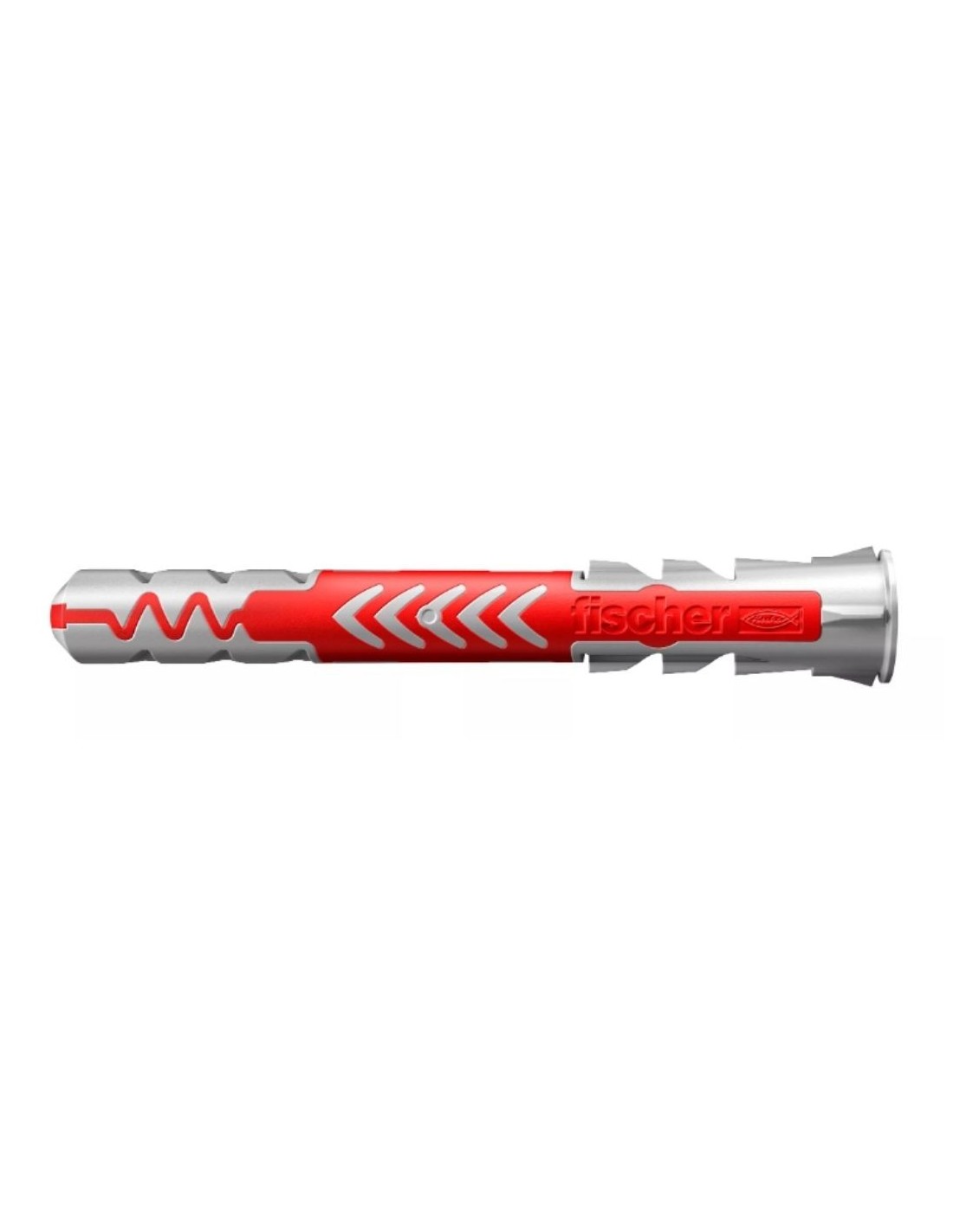 El fischer DuoPower ofrece muy buenos valores de sujeción gracias a sus 2 componentes: Dependiendo del material de construcción, los componentes grises de nailon de alta calidad activan automáticamente la función óptima del producto (expansión, plegado, anudado) para una mejor sujeción. Las alas de expansión del componente rojo apoyan la expansión segura y ofrecen seguridad adicional al componente gris. Fácil atornillado del tornillo y correcto "apriete" para cerrar. No hay que apretar demasiado el tornillo. El borde preformado en la cabeza del tapón evita que el tapón se deslice en el orificio de perforación.