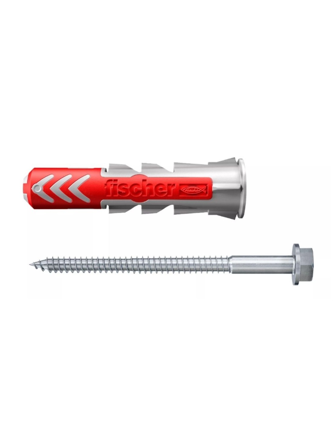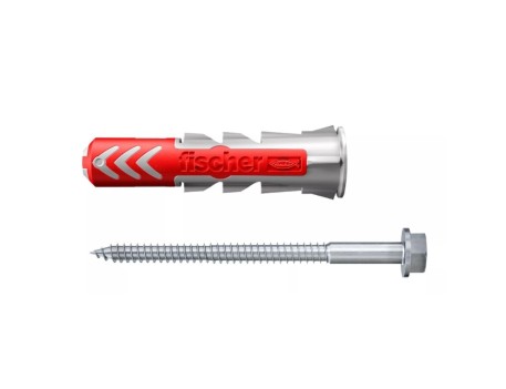 El fischer DuoPower ofrece muy buenos valores de sujeción gracias a sus 2 componentes: Dependiendo del material de construcción, los componentes grises de nailon de alta calidad activan automáticamente la función óptima del producto (expansión, plegado, anudado) para una mejor sujeción. Las alas de expansión del componente rojo apoyan la expansión segura y ofrecen seguridad adicional al componente gris. Fácil atornillado del tornillo y correcto "apriete" para cerrar. No hay que apretar demasiado el tornillo. El borde preformado en la cabeza del tapón evita que el tapón se deslice en el orificio de perforación. Los tornillos suministrados se adaptan de forma óptima al tapón de expansión DuoPower de fischer.