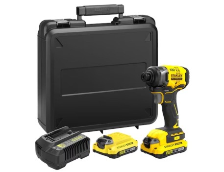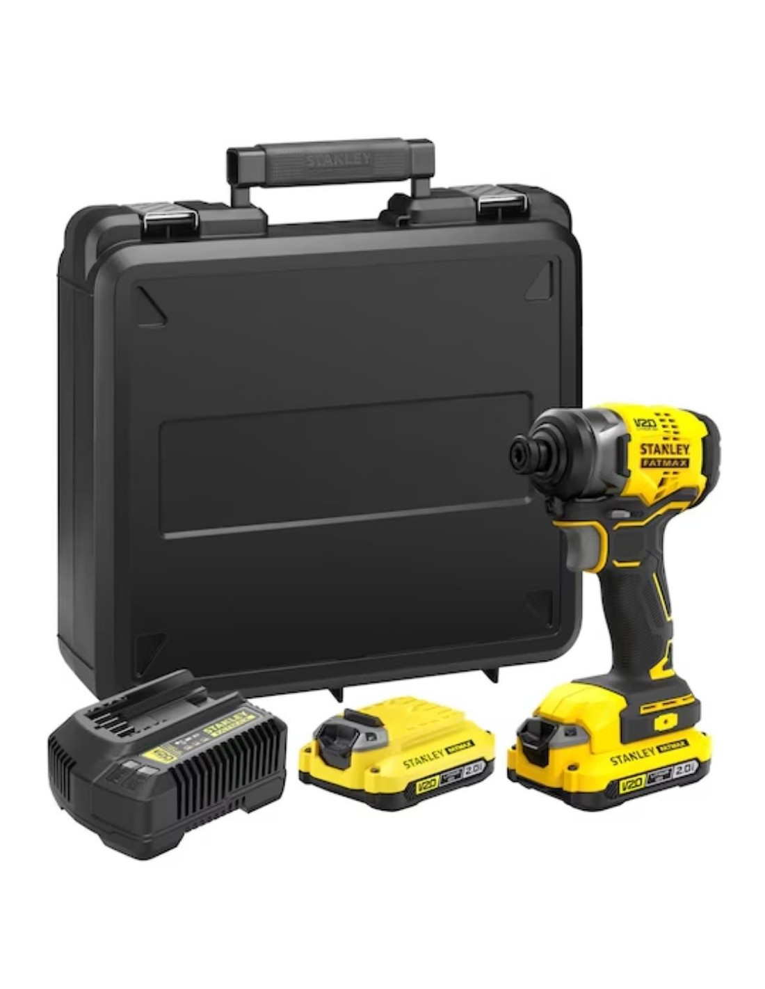 ATORNILLADOR IMPACTO BRUSHLESS STANLEY V20 2 BATERÍAS 2AH PORTAPUNTAS HEXAGONAL