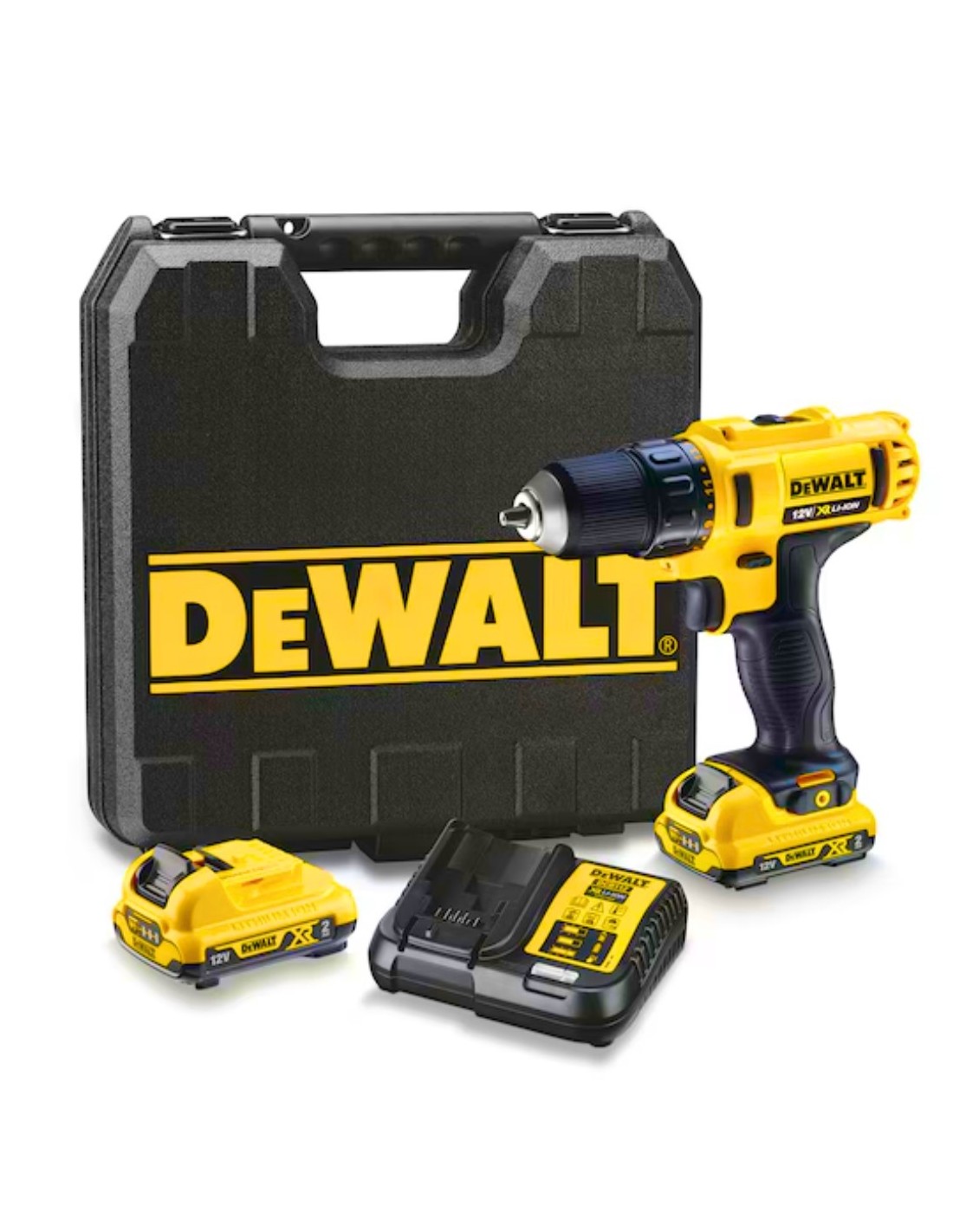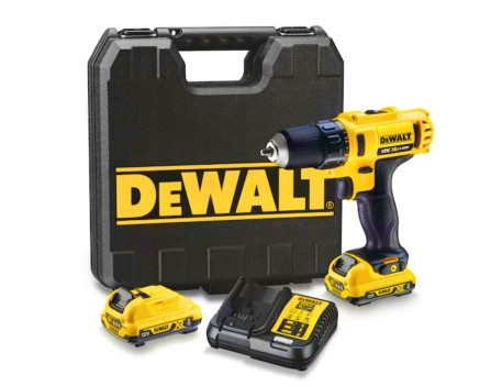 Taladro atornillador DEWALT XR 18V inalámbrico brushless. Motor sin escobillas alta eficiencia. Batería litio 2.0Ah incluida. Profesional compacto.