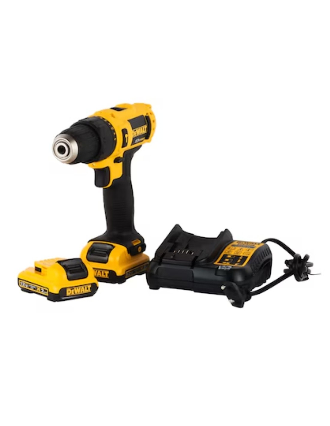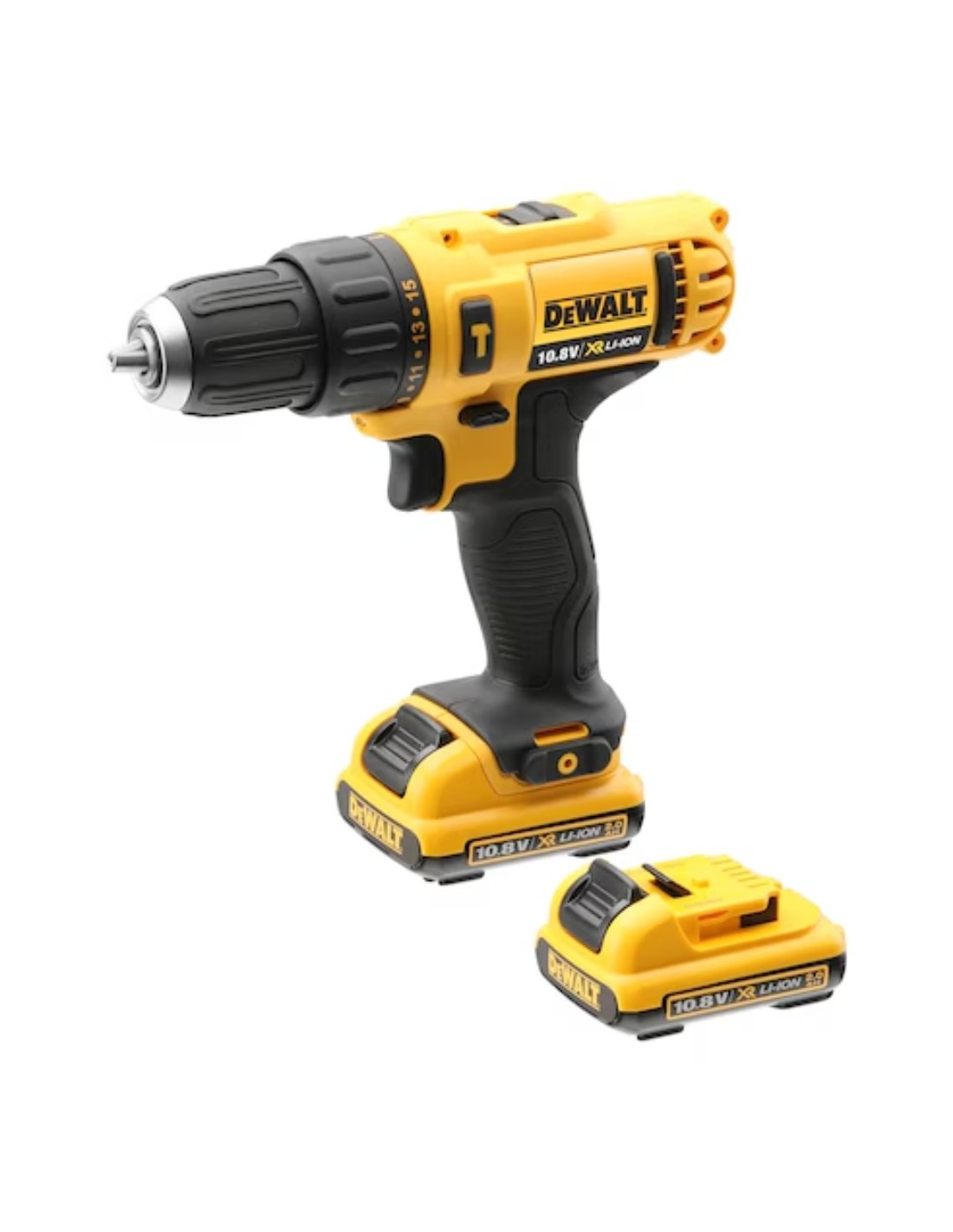 Taladro percutor DEWALT XR 10.8V compacto ligero. Kit 2 baterías Li-Ion 2Ah, 15 posiciones par, LED integrado. Portabrocas 10mm kit box.