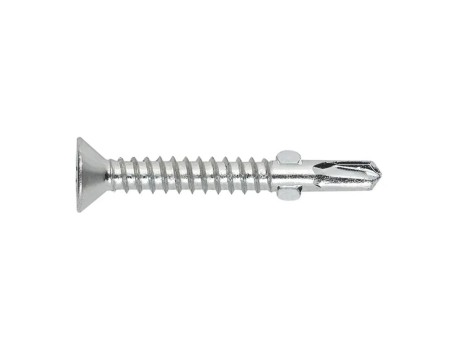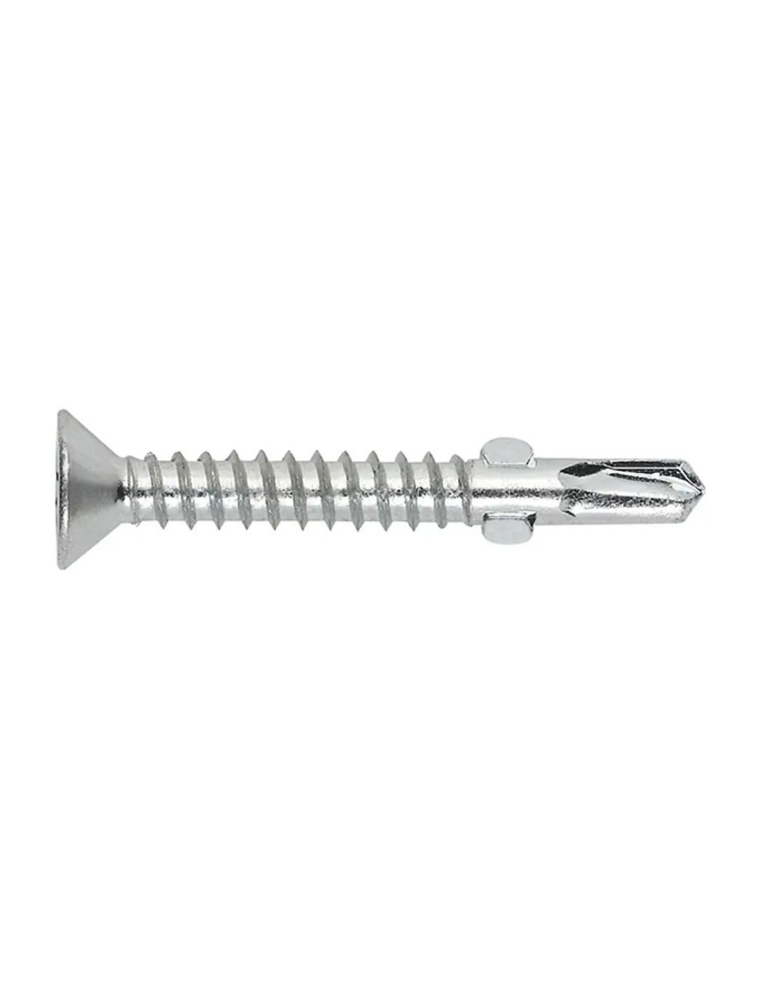 Tornillo autoperforante madera-metal, con punta broca de dos alas, cabeza avellanada y huella PH. Permite fijar piezas de madera a perfiles metálicos. Cuenta con rosca para metal de 60º. La cabeza avellanada hace que quede embutido en la madera tras la instalación. Está fabricado en acero con recubrimiento zincado.