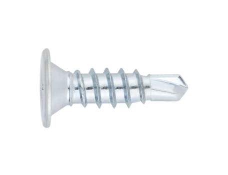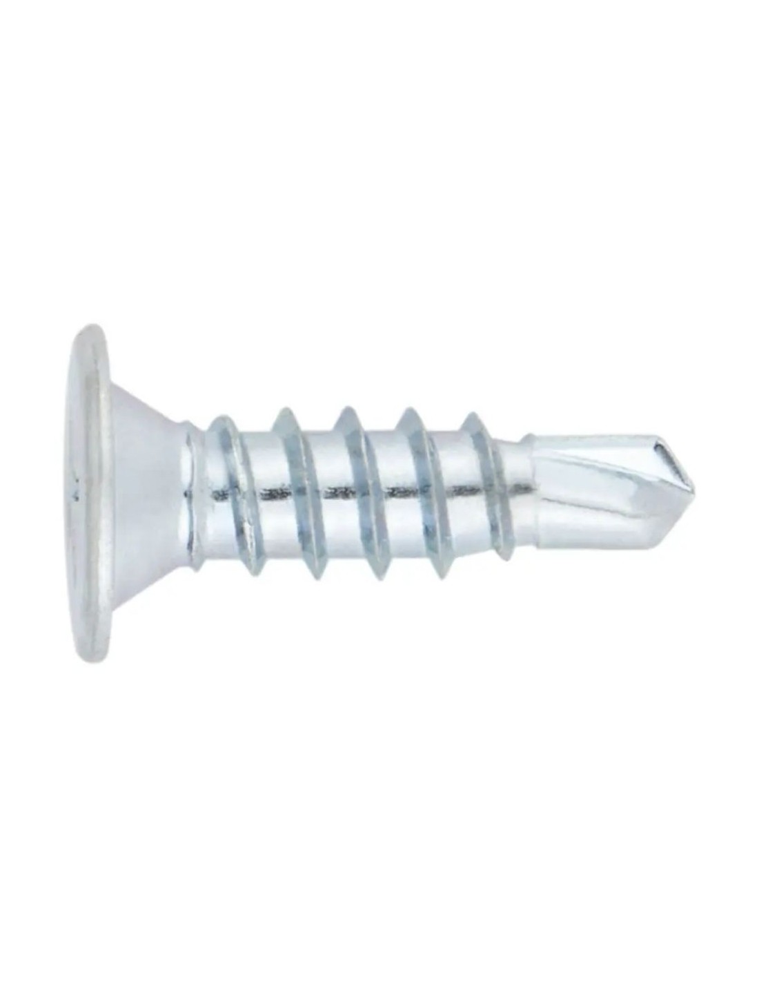 Tornillo autorroscante de cabeza plana, con punta de tipo broca y huella PH. Es especialmente útil en uniones sobre metal donde se requiera una altura de cabeza más reducida, como puertas deslizantes de ventanas correderas. Es autotaladrante, por lo que no requiere de taladro previo. Está fabricado en acero zincado.