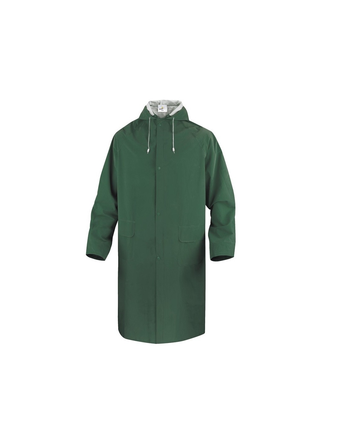Chubasquero para lluvia, tejido 100% poliéster doble impregnación PVC, costuras termoselladas, capucha fija, puños elásticos, ventilación espalda y 2 bolsillos. Certificación EN343/EN ISO 13688.