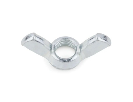 Tuerca mariposa o tuerca de palomilla. Su estructura cuenta con alas que permiten un apriete manual, sin necesidad de herramientas adicionales. Permite montar o desmontar uniones de forma ágil y sencilla. Está fabricada en acero con recubrimiento zincado.