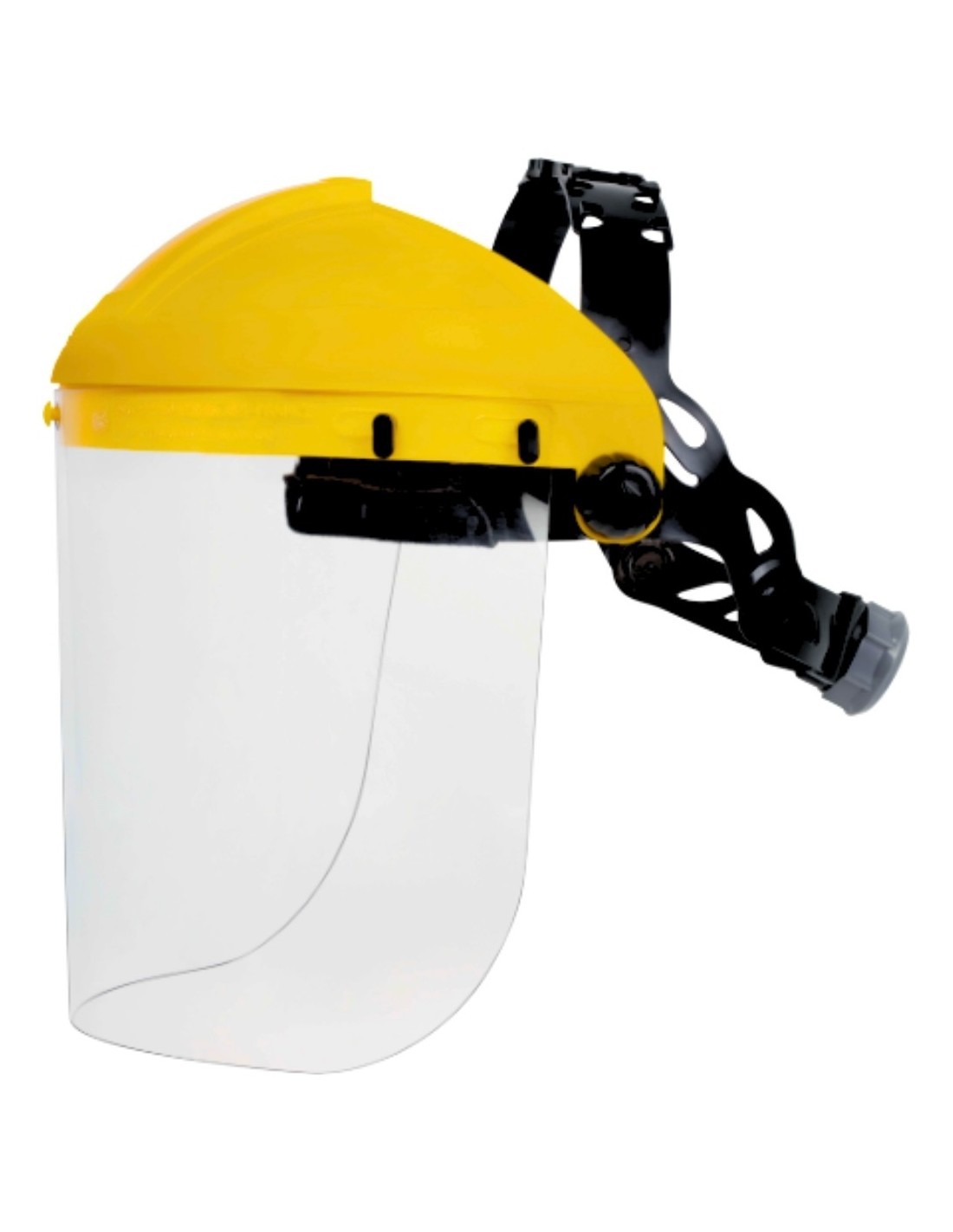 Certificación EN166 resistencia mecánica BT protección golpes químicos partículas. Visera curvada ventilación optimizada mayor protección salpicaduras. Ligero robusto resistente flexión torsión clase óptica 1.