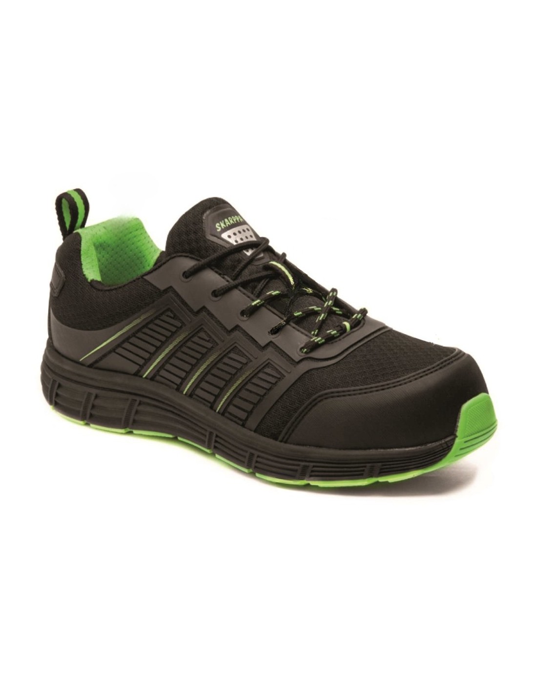 Fabricado con innovador material KPU y malla de alta resistencia en negro/verde, incorpora puntera de fibra de vidrio (40% más ligera que el acero) y exclusiva plantilla textil Kevlar Boan Dyna-Flex que proporciona flexibilidad y protección superiores.