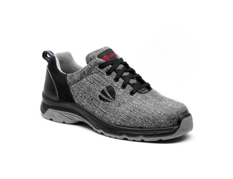 Calzado de seguridad GEO S1P SRC METAL-FREE PLATINUM con material ECO TEX-PET 100% reciclado gris/negro, puntera composite y plantilla IBISAFE antiperforación. Suela PU. Tallas 36-49.